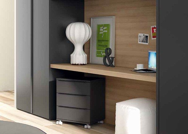 With Infinity folding beds you can create spaces as original as this composition in which the wardrobe and desk are perfectly integrated.