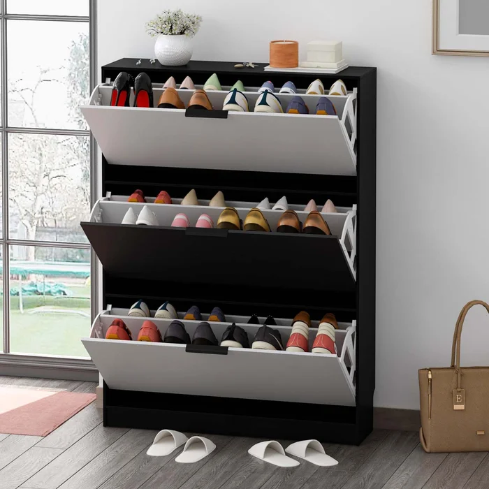 - Spacious 3 drawers, each one has two rows to accommodate many shoe pairs.