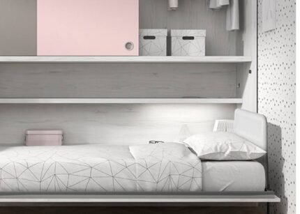 Bedroom with vertical folding bed measuring 135 x 190 with study area.
