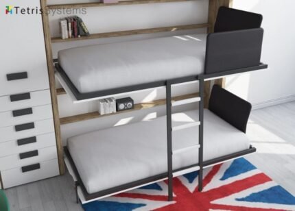 Bedroom with fold-Bedroom with fold-down bunk bed and corner wardrobe