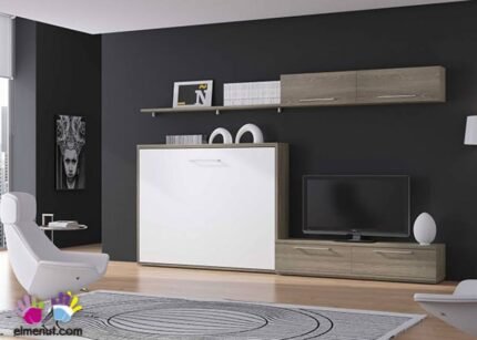 Living room with 150 x 190 horizontal folding bed with wall composition