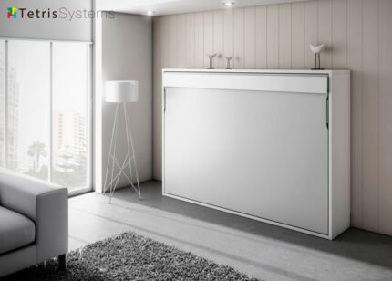 Vertical folding bed measuring 150 x 190 + bookcase and study area.