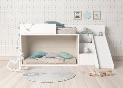 Children’s bunk bed model, with sliding base and 2 drawers with wheels