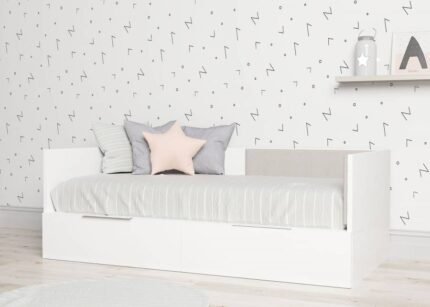 Trundle bed with two drawers, upholstered backrest and arms