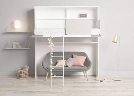 High folding bed with ladder and guard