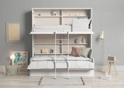 Horizontal folding bunk bed 90 x 190 cm with trundle bed