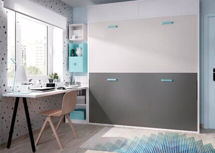 Children’s room with 90 x 190 vertical folding bed with desk.