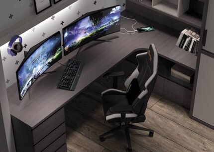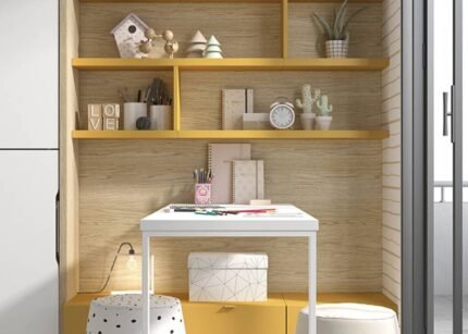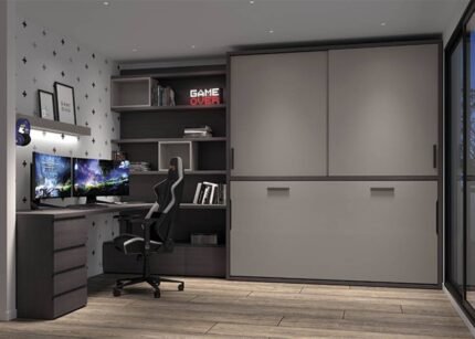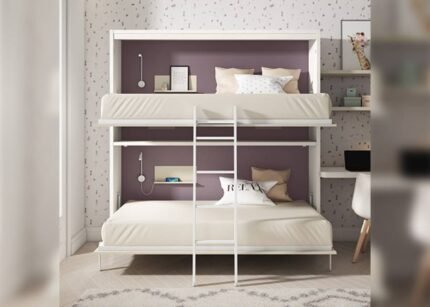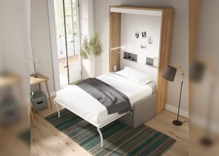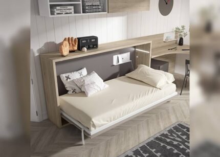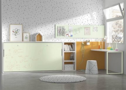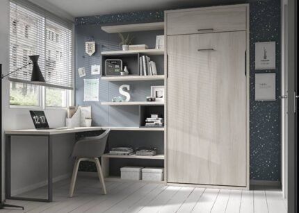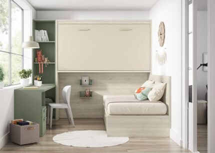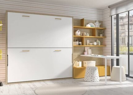 Double horizontal folding bed measuring 90 x 190 with study area.