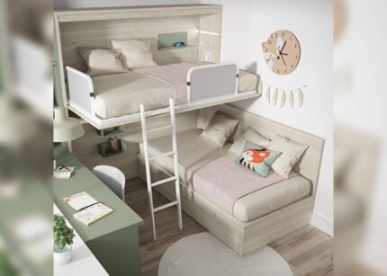 Children’s room with a 90 x 190 vertical folding bed with a loft