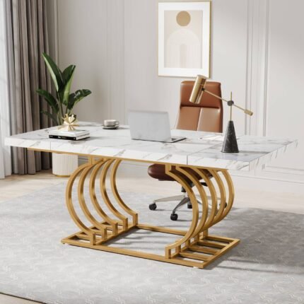 Executive Desk, 63? Modern Computer Office Desk with Faux Marble Top
