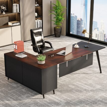 Executive Desk, 87? L-Shaped Computer Desk with 51? File Cabinet